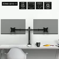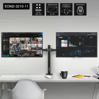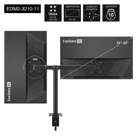 Настольное крепление ExeGate EDM2-3210-11 (для двух мониторов 15"-32", VESA 75x75, 100x100, макс. нагрузка на один кронштейн 10 кг, наклон -90°/+90°, поворот -90°/+90°, вращение 360°, 2 способа крепления: сквозное и струбцина, цвет черный)