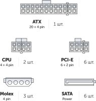 - Питание видеокарты 6х(6+2) pin
