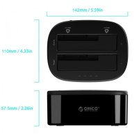 Док-станция ORICO 6228US3-C-UK-BK-BP на 2 HDD для 2.5" и 3.5" SATA HDD на USB3.0 (Clone 2 HDD, Dock Station) Black