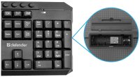DEFENDER Jakarta C - 805 - беспроводной набор с радиусом действия до 10 метров легкий и простой в установке, для работы не нужны драйверы. Удобное расположение мультимедийных клавиш и симметричная форма мыши позволят комфортно выполнять нужные задачи. Клавиатура имеет 104 основные клавиши и 8 дополнительных горячих клавиш для быстрого доступа к офисным, мультимедийным и интернет приложениям. Классическая раскладка и возможность регулировать угол наклона клавиатуры с помощью ножек делает ее удобной в использовании. Мышь удобна для работы как левой так и правой рукой благодаря своей симметричной форме. Кнопка смены разрешения позволяет выбрать скорость мыши из 3 - х режимов, элементы питания поставляются в комплекте.- Комплектация: клавиатура и мышь